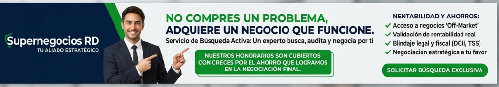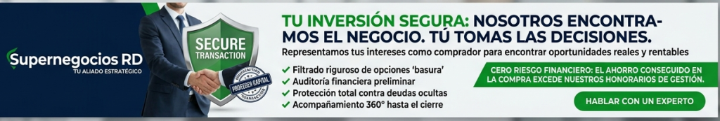 SOLICITA TU SERVICIO DE BÚSQUEDA ACTIVA DE NEGOCIOS CON LA EXPERIENCIA DE SUPERNEGOCIOS Uncategorized 0 ACCEDE A OPORTUNIDADES QUE NO ESTÁN PUBLICADAS Con nuestro servicio de BÚSQUEDA ACTIVA DE NEGOCIOS identificamos oportunidades de negocios, adaptados a tu perfil y presupuesto. COMPLETA EL FORMULARIO Y COMIENZA HOY. Garantizamos absoluta confidencialidad Respuesta rápida TELEFONO: (809) 804-6564 COMPLETA ESTOS DATOS AHORA Nombre *Apellidos *Número de teléfono *E-mail *DirecciónCiudadProvinciaTipo de Negocio que me interesaDetalles de lo que solicita0 / 180Área de Interés para invertirGastronomía (Restaurantes/Bares, Terrazas)Servicios (Lavanderías, Peluquerías, etc.)Provisiones (Colmados, Supermercados, etc)Medicina (Farmacias, Laboratorios, Distrituidoras Farmacéuticas)Educación (Colegios, Maternales, Institutos)OtrosExperiencia Previa en NegociosDueño actual de NegociosEx-dueño / EmprendedorSólo InversionistaEmpleado buscando independenciaOtra opciónPresupuesto disponibleIndique el monto disponible para invertirDOPUbicacion de PreferenciaIndica tu preferencia de ubicación de negocios. Indica sector y provincia¿Cuál es su principal preocupación a la hora de invertir?Riesgos legales o deudas ocultasVeracidad de los números financierosEl proceso de transición con los empleadosLa negociación del precio final• ¿Desea que Supernegocios realice una búsqueda activa de negocios que NO están publicados en el mercado?Sí, me interesa el servicio de Representante Exclusivo.Solo quiero recibir alertas de negocios ya publicados.SOLICITO MÁS INFORMACIÓN